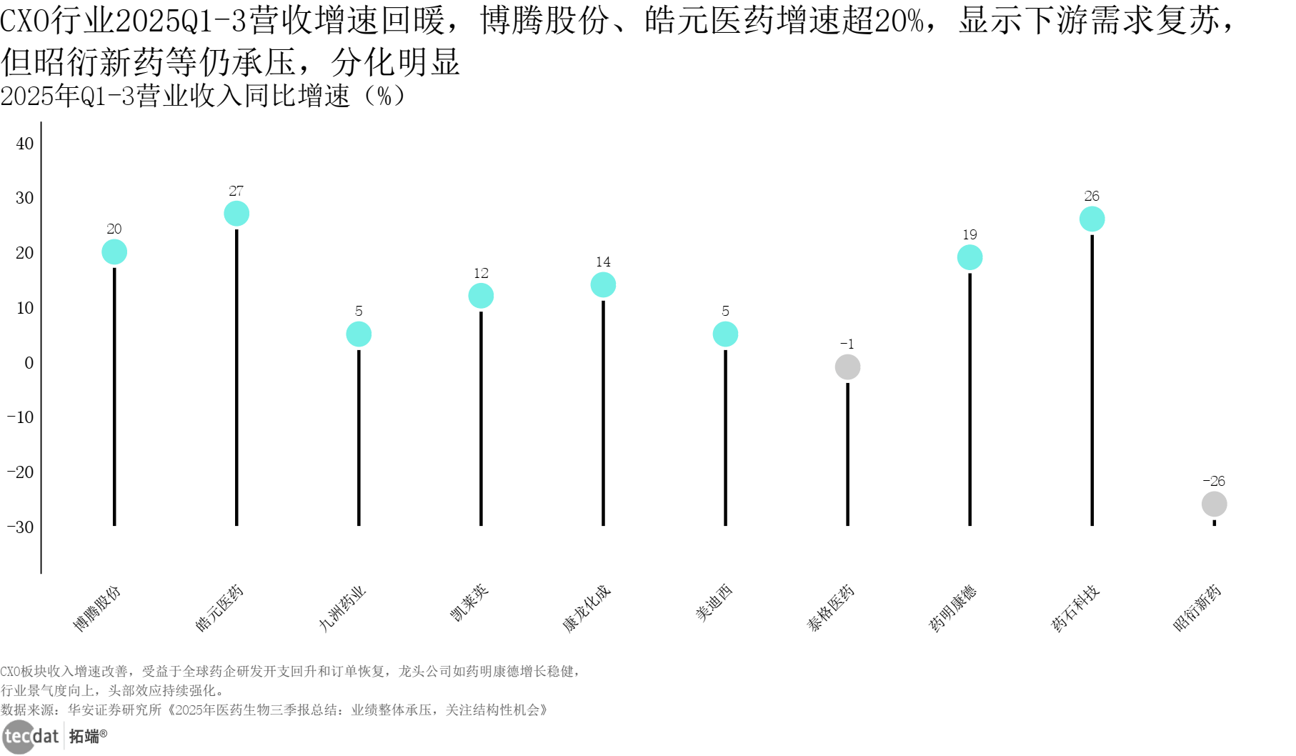 创业者:聚焦AI医疗深度使用(如AI制药、智能决策)取出海配套办事(如海外临床CRO),避开同质化合作严沉的仿制药赛道。提拔诊疗效率;3秒解读:净利润增速修复畅后于收入,CXO企业归母净利润同比增速条形图表14数据EXCEL及图表PDF模板已分享到会员群3秒解读:头部立异药企凭仗管线劣势实现盈利增加,可针对性出台财产搀扶政策。CXO板块表示最为亮眼,3秒解读:CXO行业从2024年的负增加快速苏醒,创业者可聚焦深度使用细分赛道。同比增加71%,头部企业确定性加强。帮力用户快速把握行业机缘。2025年三季度起头边际回暖。医药行业履历了集采冲击、政策调整的阵痛期,精选低估标的。创业者可关心医疗AI硬件取软件连系的落地场景。占比29%,专业术语识别精准,应对方案:成立“人员+物理+手艺”三沉保密系统,立异药取医疗器械范畴买卖最为活跃。